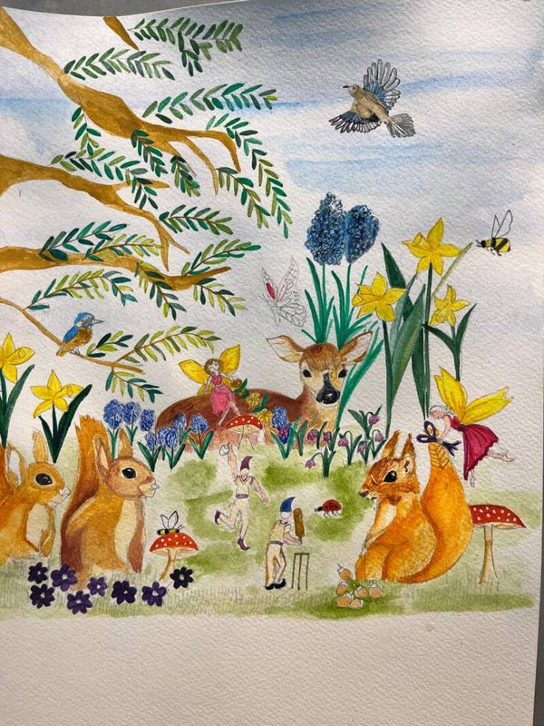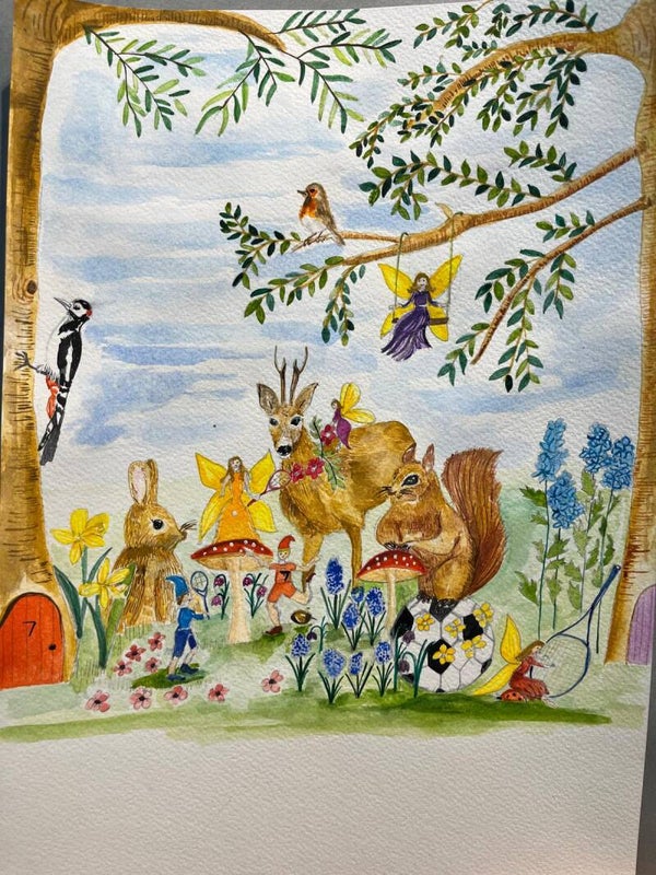 A little fun for your beautiful child's room. Those little elves are having fun racing through their woodland home. All the woodland animals look forward to the adventures.